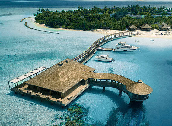 Отель расположен на небольшом очаровательном острове, где сошлись воедино идеальный пляж, обширная лагуна и классный домашний риф. Вся территория резорта покрыта тропическими садами, цветниками и плантациями, где выращивают овощи и фрукты для стола гостей, отдыхающих в 90 роскошных виллах. Шесть баров и ресторанов спешат удовлетворить самые утонченные запросы. В том числе – обширная винотека, павильон шампанского и, конечно, легендарный 5.8 Undersea. Наслаждайтесь изысканными блюдами и напитками, расслабляйтесь в шикарном Sulha Spa, исследуйте живописный риф – и любите друг друга!