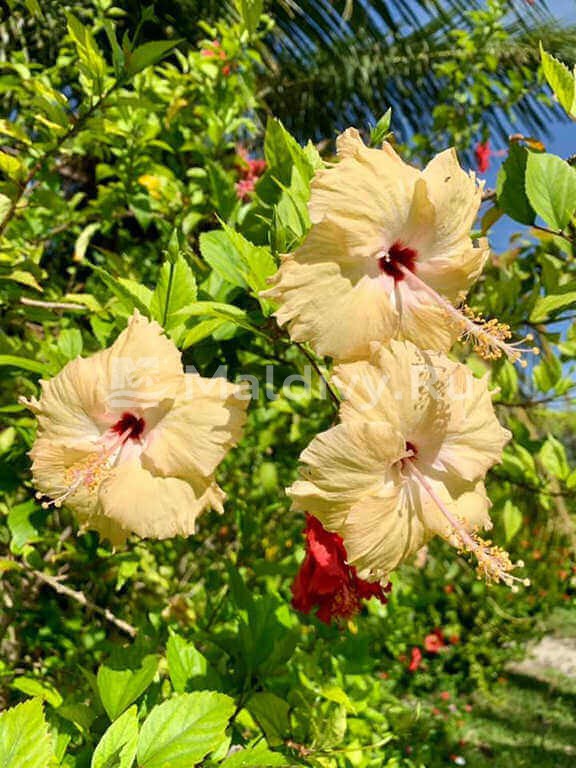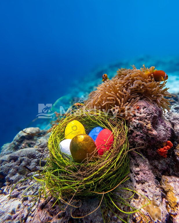 Остров окружен великолепным домашним рифом, где шевелят щупальцами анемоны, скрывая забавных рыб клоунов, грызут кораллы рыбы-попугаи, величаво плавают черепахи. Здесь постоянно обитает более сотни видов рыб, множество моллюсков и лобстеров, иногда даже приплывают манты! Вдоль рифа организовано несколько точек входа, как от берега, так и от надводных вилл. Снорклинг здесь хорош в любое время суток, особенно ночью, когда большинство обитателей рифа пробуждается от дневного сна.