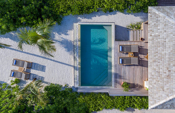 Береговое размещение в Hurawalhi Island Resort представлено всего двумя категориями: Beach Pool Villa и Beach Sunset Pool Villa. Все бунгало расположены вдоль юго-западного побережья острова, дополнены приватными бассейнами и имеют прямой доступ к пляжу. Береговые виллы идентичны по конфигурации, площади и дизайну, но Beach Sunset Pool Villas имеют потрясающий вид на закат.