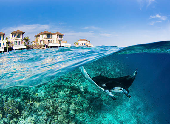 InterContinental Maldives Maamunagau Resort окружен живописной лагуной и густонаселенным домашним рифом, где можно повстречать самых экзотических обитателей Индийского океана. Это десятки видов кораллов, пышные анемоны, в щупальцах которых скрываются любопытные рыбы-клоуны, стаи снэпперов, луцианов, наполеонов и рыб-хирургов, величавые черепахи, скаты различных видов, мурены, причудливые моллюски, рифовые акулы… Мало впечатлений? Совершите незабываемую экскурсию в Ханифару-Бэй, где можно поплавать в компании величественных китовых акул и мант!