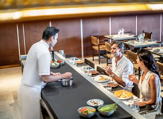 Ресторан Cafe Umi – средоточие лучшего кулинарного опыта, с любовью собранного со всего мира. Ароматная выпечка по европейским рецептам, аутентичные мальдивские блюда, гастрономические традиции Азии, головокружительные шоу теппаньяки родом из Японии – все это в обрамлении фирменного сервиса InterContinental Maldives Maamunagau Resort. Живые кулинарные станции помогут персонализировать гастрономический опыт, придав ему обертона, созвучные именно вашим предпочтениям!