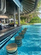 Виллы над водой хоть и не слишком большие, но с дизайнерскими интерьерами, отличной мебелью и сантехникой. Бассейн при вилле идеально чистый, интересной полукруглой формы. Куча баров и зон отдыха, есть даже в лагуне на пляже, только для взрослых. Везде свободная расслабленная атмосфера. Самый крутой ресторан, на наш вкус, это The Lighthouse. Представьте себе маяк над океаном, со смотровой площадкой на высоте птичьего полета. Кухня очень изысканная, каждое блюдо оформлено как произведение искусства.