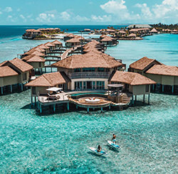Широкий пирс, уходящий к бескрайнему синему горизонту, напоминает ветвь, унизанную роскошными цветами. Это 22 великолепные надводные виллы InterContinental Maldives Maamunagau Resort. Они имеют идентичную планировку, изысканное наполнение и дополнение в виде просторных террас и полукруглых инфинити-бассейнов. Вы можете выбрать очаровательную виллу со стороны рассвета или заката, в зависимости от собственных предпочтений – и наслаждаться восхитительными морскими пейзажами в любое время суток!