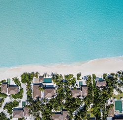 Значительная часть номерного фонда отеля (25 вилл и одна резиденция с тремя спальнями) занимает уникальную локацию в лагуне, на песчаной косе. Гости этих вилл могут насладиться преимуществами и пляжного, и надводного размещения сразу.
