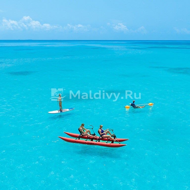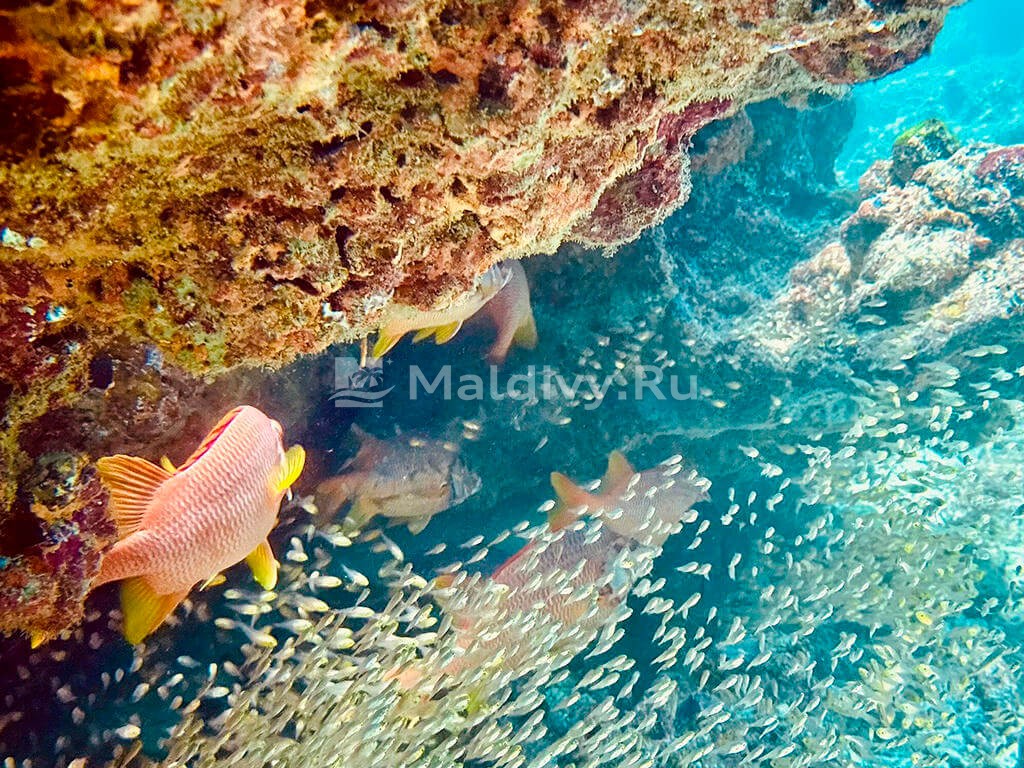 Домашний риф, обрамляющий дуэт островов Jawakara, поистине огромен. Однако и лагуна здесь немаленькая, поэтому добраться до самых интересных мест проблематично. Гостей катают на риф дважды в день на спидботе, а в промежутках можно поплавать и в лагуне. Там тоже найдется немало интересного, в том числе, и несколько подводных фотозон. Преданные фанаты могут отправиться на ночной снорклинг или в гости к морским черепахам, акулам-нянькам, гигантским мантам – снорк-трипы по различным направлениям проводятся ежедневно.