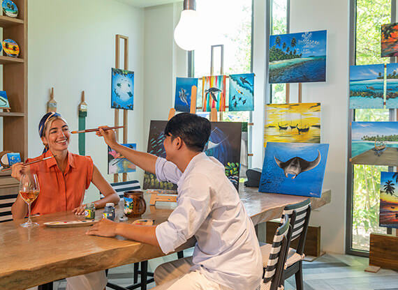 Отельеры тщательно продумали каждый элемент, от дизайна вилл до насыщенной развлекательной программы. Роскошный надводный Explore Spa, уникальный Waves Lifestyle Hub сосредоточивший в себе все для отдыха и саморазвития в различных направлениях, легендарный центр дайвинга и водного спорта Sub Oceanic, клуб Family & Kid's Hub, 7 ресторанов и баров на любой вкус, романтические ужины, пикники, экскурсии, дискотеки, творческие и кулинарные мастерские – здесь обретет желаемое каждый гость!