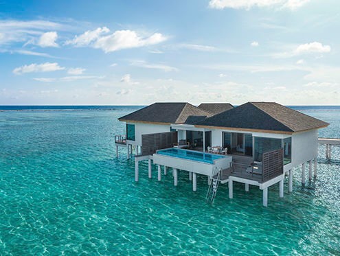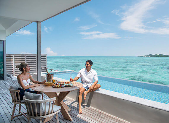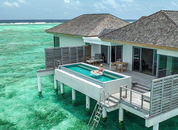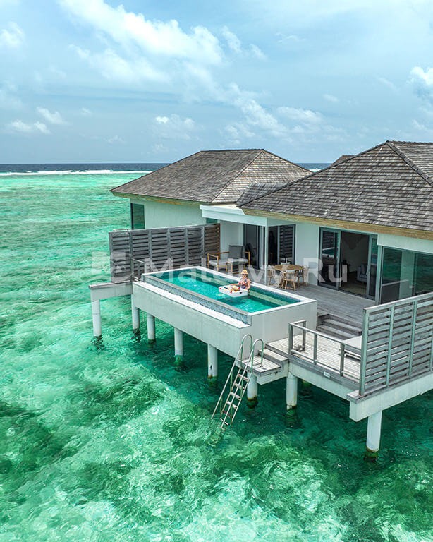 Надводное размещение в Le Méridien Maldives заслуженно возглавляют просторные Two Bedroom Overwater Villas with Pool. Они расположены в конце обеих локаций надводных вилл, знаменуя высочайший уровень приватности. Пара великолепных спален и ванных, просторная гостиная, зонированная терраса, бассейн и выбор вида – восход или закат!