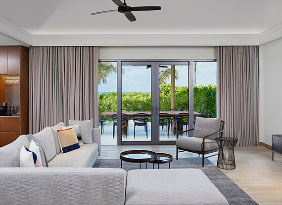 Флагманом номерного фонда отеля по праву считается Three Bedroom Thilamaafushi Beach Villa with Pool. Это фантастическая береговая резиденция с тремя спальнями, четырьмя ванными, грандиозной гостиной, открытой столовой, джакузи, приватным бассейном – на идиллическом побережье Индийского океана!