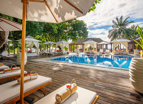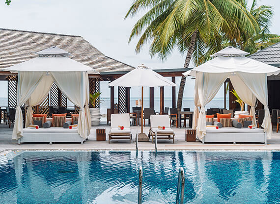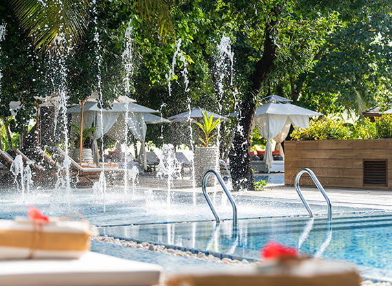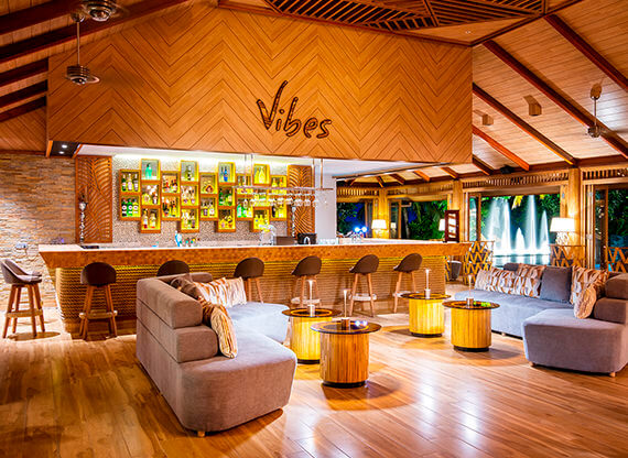 Бар Vibes – олицетворение оживленной и дружелюбной атмосферы Lily Beach Resort & Spa. Это не только бар, но и семейный клуб со взрослым и детским бассейном, фонтанами, восхитительными газебо и прямым доступом к пляжу. Здесь комфортно каждому: пока родители расслабленно общаются и потягивают коктейли, малышня плещется в лягушатнике и веселится вовсю. А по вечерам наступает время развлекательной программы – живой музыки и диджей-пати!