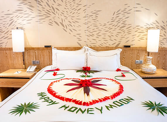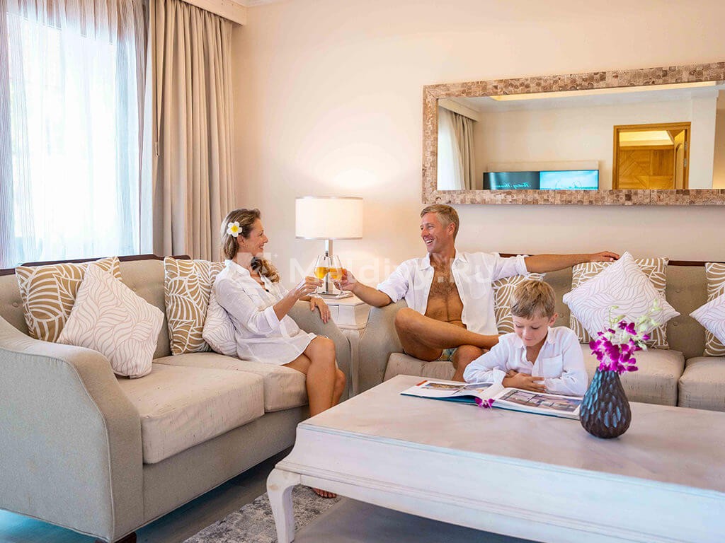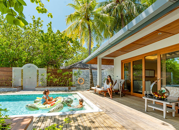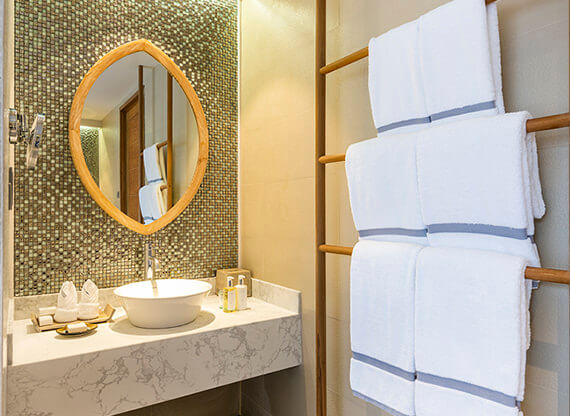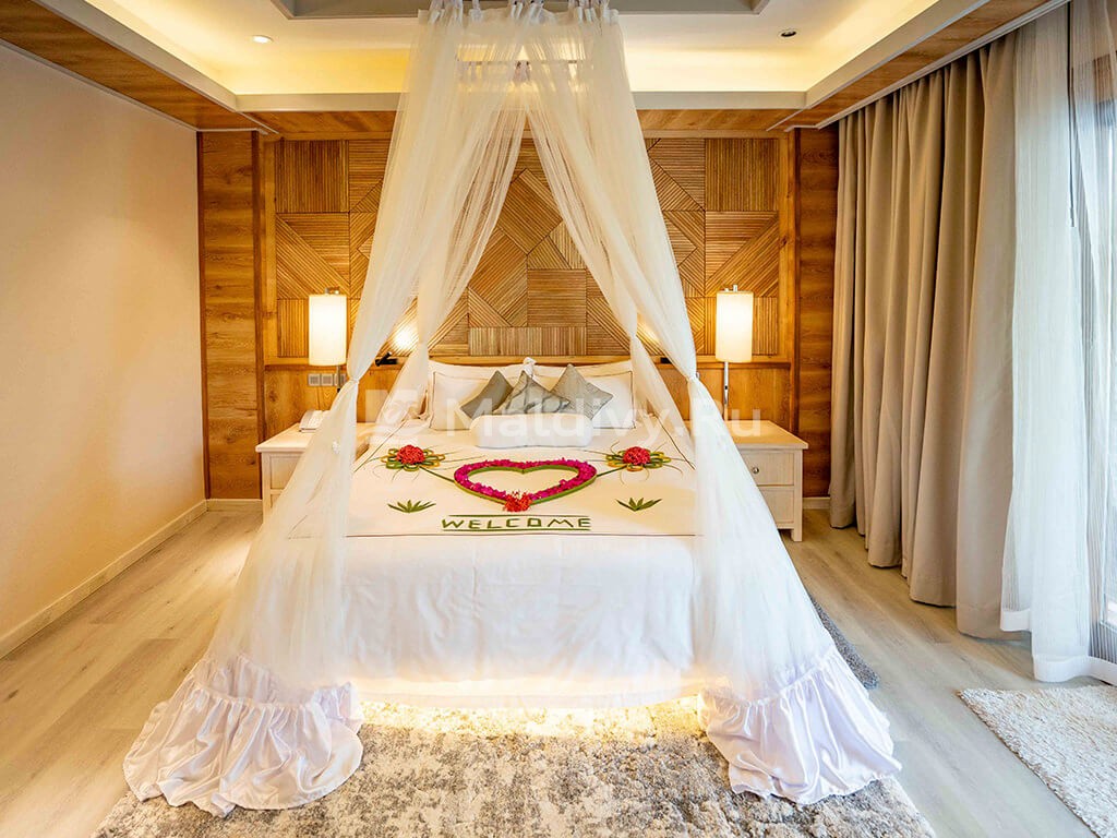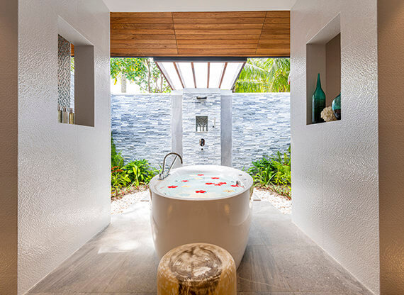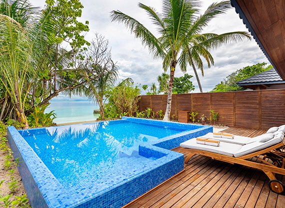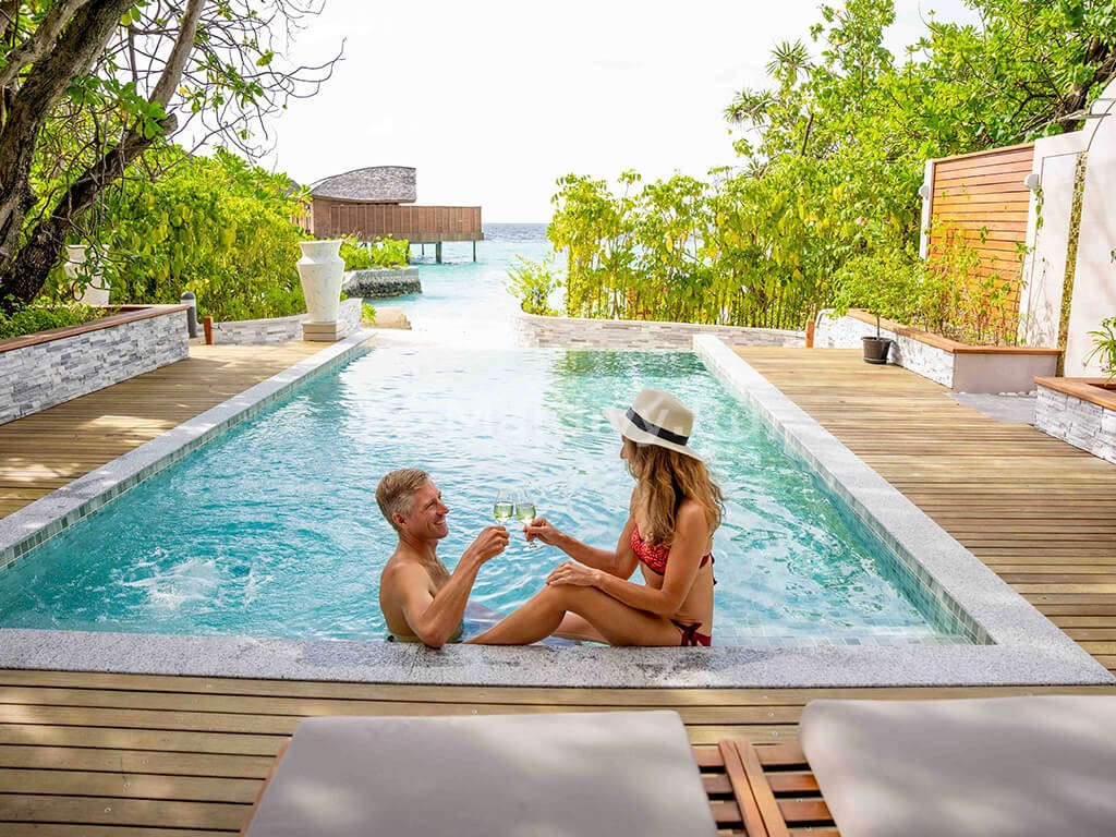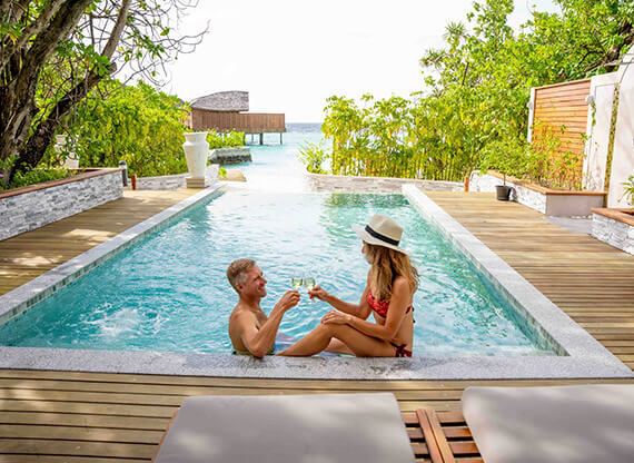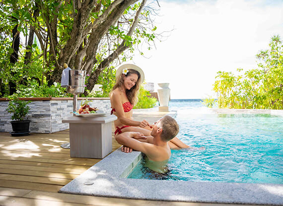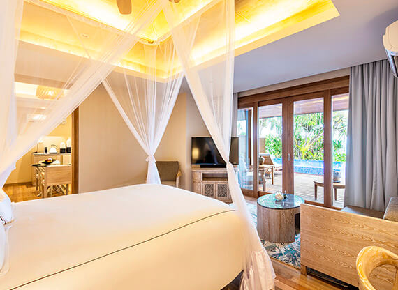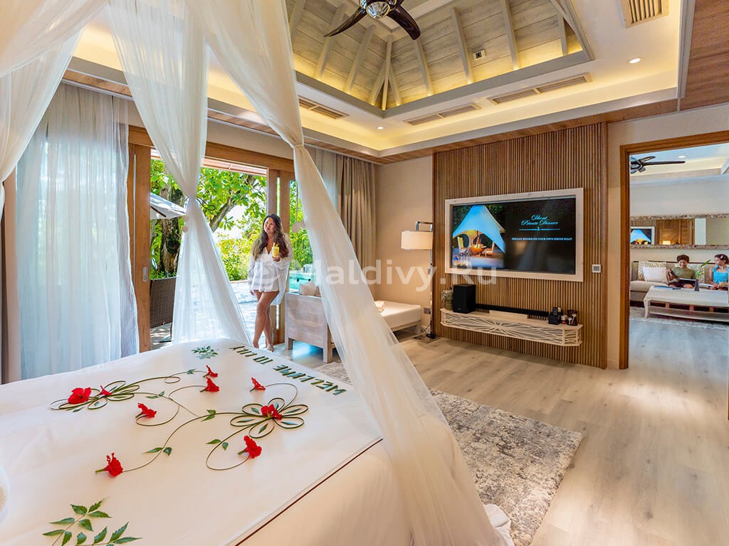 Проснитесь под ласковый шелест пальм, сладко потянитесь, встаньте с королевского ложа с матрасом Serta/Sealy и сделайте пару шагов к безупречному хрусталю лагуны. А можно просто захватить из мини-бара шампанского и встретить еще одно прекрасной утро в приватном бассейне!