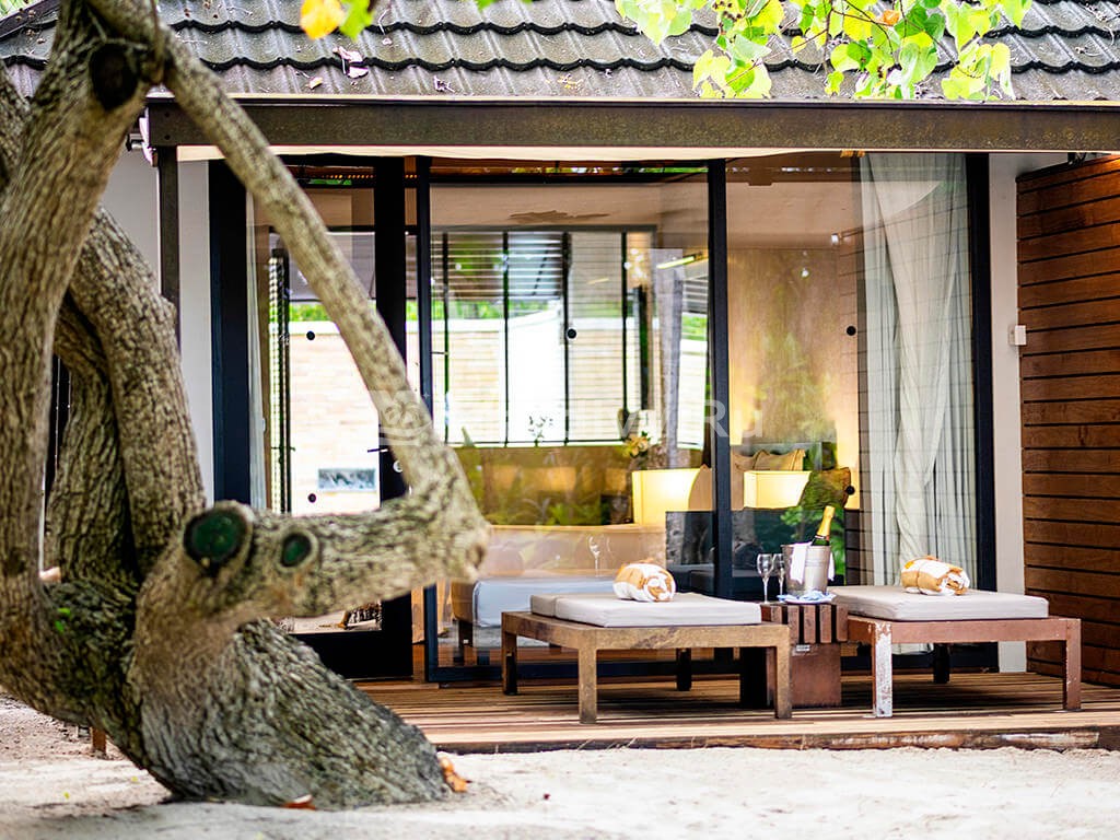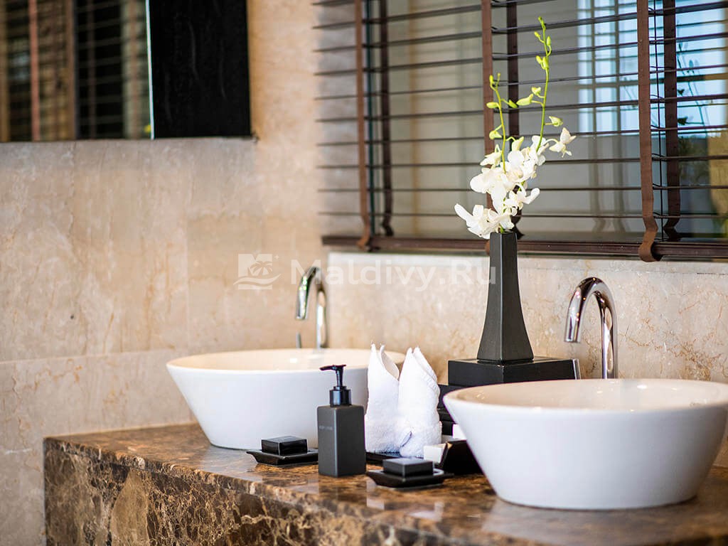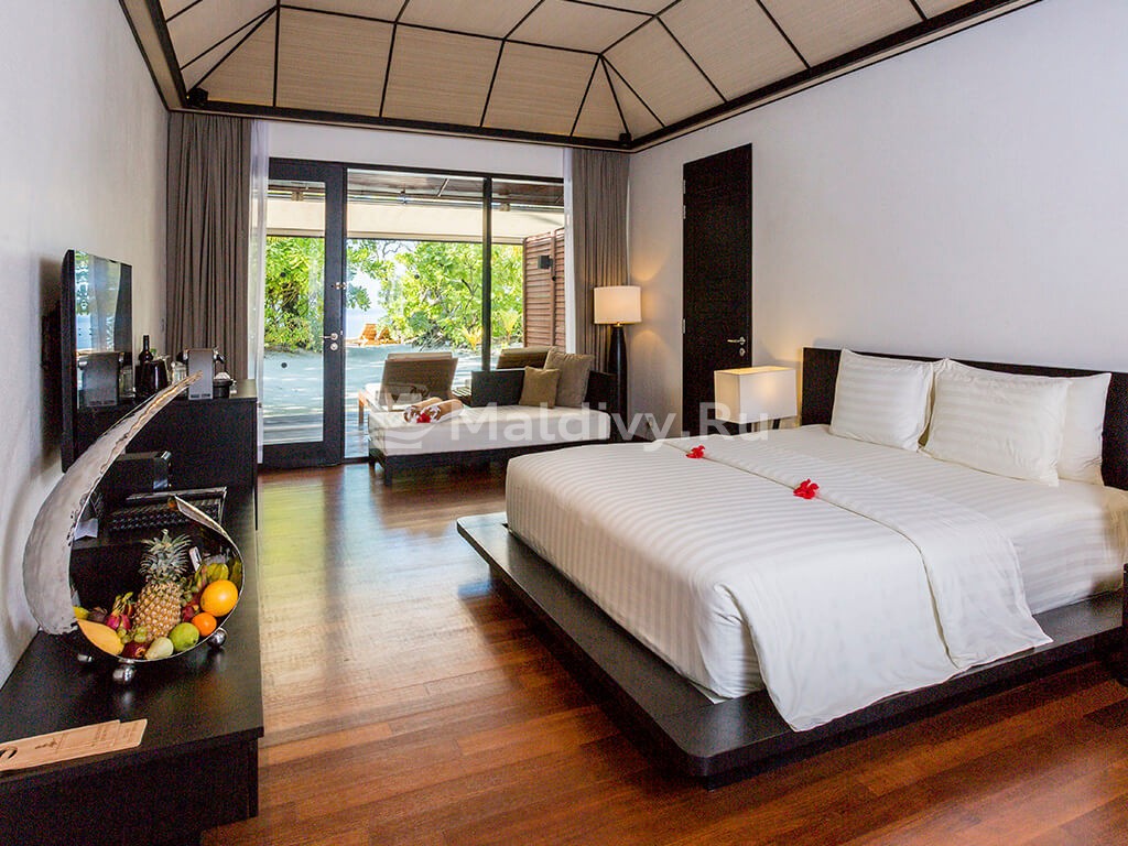 Очаровательная Beach Villa (Пляжная вилла) – элегантный дуплекс в островном стиле от Lily Beach Resort & Spa. Виллы этой категории обрамляют северное побережье острова, где сошлись все тропические звезды: идеальный пляж, отороченный изумрудными пальмами, хрустальная лагуна и шикарный домашний риф с несколькими точками входа. Ну и, конечно, большинство центров притяжения резорта, где можно вдоволь оторваться, вкусно покушать и даже пошуметь.