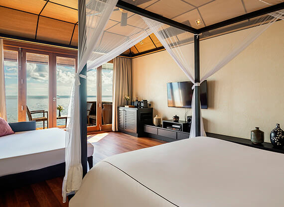 Засыпайте под тихий плеск лазурной воды, просыпайтесь с первыми лучами тропического солнца, расслабляйтесь в спа-бассейне, снорклите на потрясающем домашнем рифе, наслаждайтесь напитками и снеками из мини-бара – не отказывайте себе ни в чем!