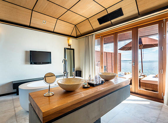 Уединенная Deluxe Water Villa (Вилла над водой делюкс) – квинтэссенция души не только Lily Beach Resort & Spa, но и Мальдив вообще. Это эталонное надводное бунгало со всеми вытекающими: высочайшей степенью уединения, роскошными интерьерами, невероятной спальней и ванной, стеклянными полами, бассейном-джакузи и фантастическим видом на Индийский океан.