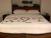 Грандиозно и незабываемо, полный восторг и наслаждение! О таком медовом месяце можно только мечтать! Подарили бесплатную фотосессию, шампанское с фруктами, роскошный ужин – все шикарно. Украшение постели – каждый вечер, очень романтично. А сама постель – на таких матрасах мы еще не спали.