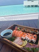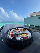 Отдыхаем сейчас в отеле Mövenpick Resort Maldives, пока все очень круто! Чил возле бассейна, коктейли – на 5 баллов из 5. Шоколад, мороженное все бесплатно в главном ресторане. Очень крутой японский ресторан, сеты большие за эту цену, офигенно вкусные.