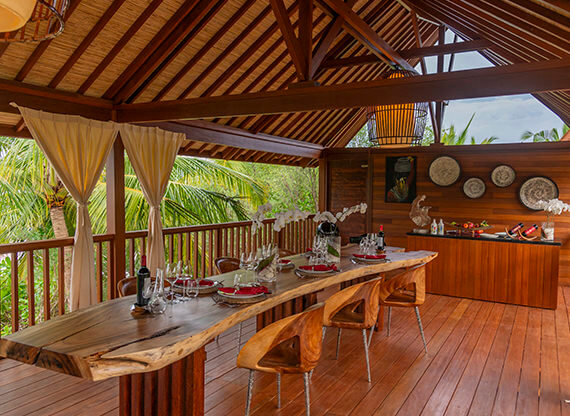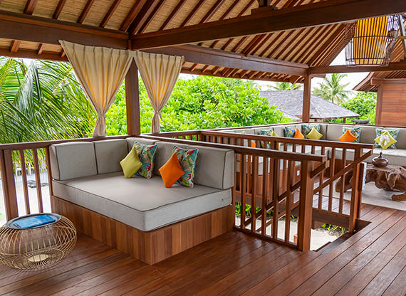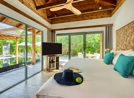 Все надводные виллы отеля дополнены не только сетями и бассейнами, но и зоной прозрачных полов в коридоре. Пляжные виллы имеют открытую планировку и оригинальные панорамные газебо на втором уровне.