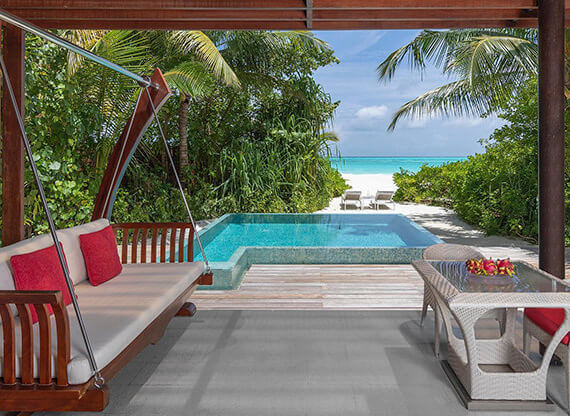 Люксовое размещение на пляже венчается великолепной резиденцией с тремя спальнями, обрамляющими стильную гостиную. Собственный спа, джакузи, приватный пляж, безупречный сервис в любое время дня и ночи, дополнительные опции – все во благо дорогих гостей!