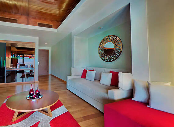 Восхитительная Deluxe Family Beach Pool Villa представляет собой стильный тандем элегантной спальни и просторной гостиной, одновременно выполняющей функции детской. К главной спальне примыкает полуоткрытая ванная комната, переходящая в залитое водой патио, обрамленное тропическим садом. Гостиная-детская дополнена отдельным санузлом. Просторная терраса с затененной зоной и переливной бассейн обрамляют виллу со стороны пляжа.