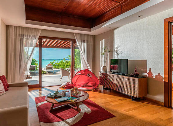 Восхитительная Family Beach Pool Villa (Семейная пляжная вилла с бассейном) – маленький локальный рай для дружной семьи. Здесь есть все, чтобы вы классно отдыхали и расслаблялись. Это просторная гостиная, где можно играть и смотреть любимые фильмы под попкорн, который вы приготовите прямо на месте, инфинити-бассейн, ухоженный пляж с тончайшим коралловым песком и комфортным входом в воду. Ну и, конечно, фирменный сервис от Niyama Private Islands Maldives