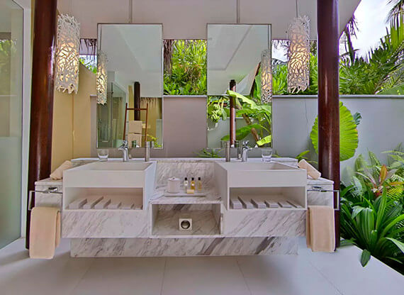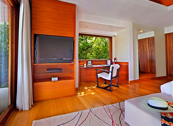В планировку Family Beach Pool Villa входит просторная мастер-спальня и стильная гостиная, способная играть роль детской. К гостиной примыкает персональный санузел. Мастер-спальня дополнена шикарной полуоткрытой ванной, переходящей в приватное патио с тропическим душем. Со стороны пляжа располагается впечатляющая терраса с крытой зоной и пейзажный бассейн.