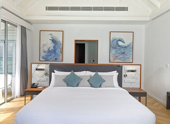 Восхитительная Over Water Villa (Вилла над водой) – классическое мальдивское бунгало, возвышающееся над лагуной Outrigger Maldives Maafushivaru Resort. Локация вилл этой категории находится с северной стороны острова: грандиозный вид на океан обеспечен, а до оживленного домашнего рифа – буквально подать рукой. Очаровательный интерьер, просторное ложе королевских размеров, панорамная терраса, деликатный персонализированный сервис – все для уединенного релакса!