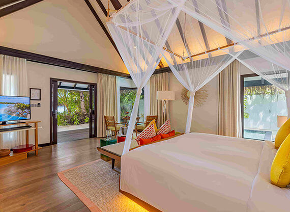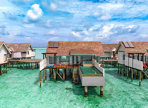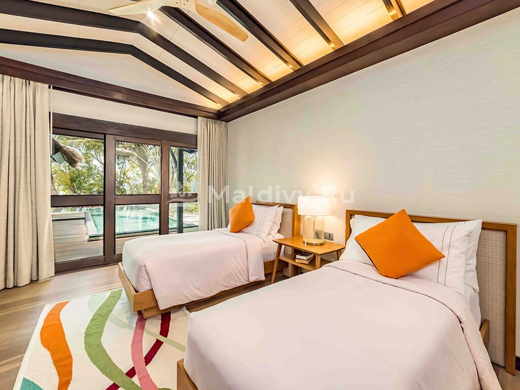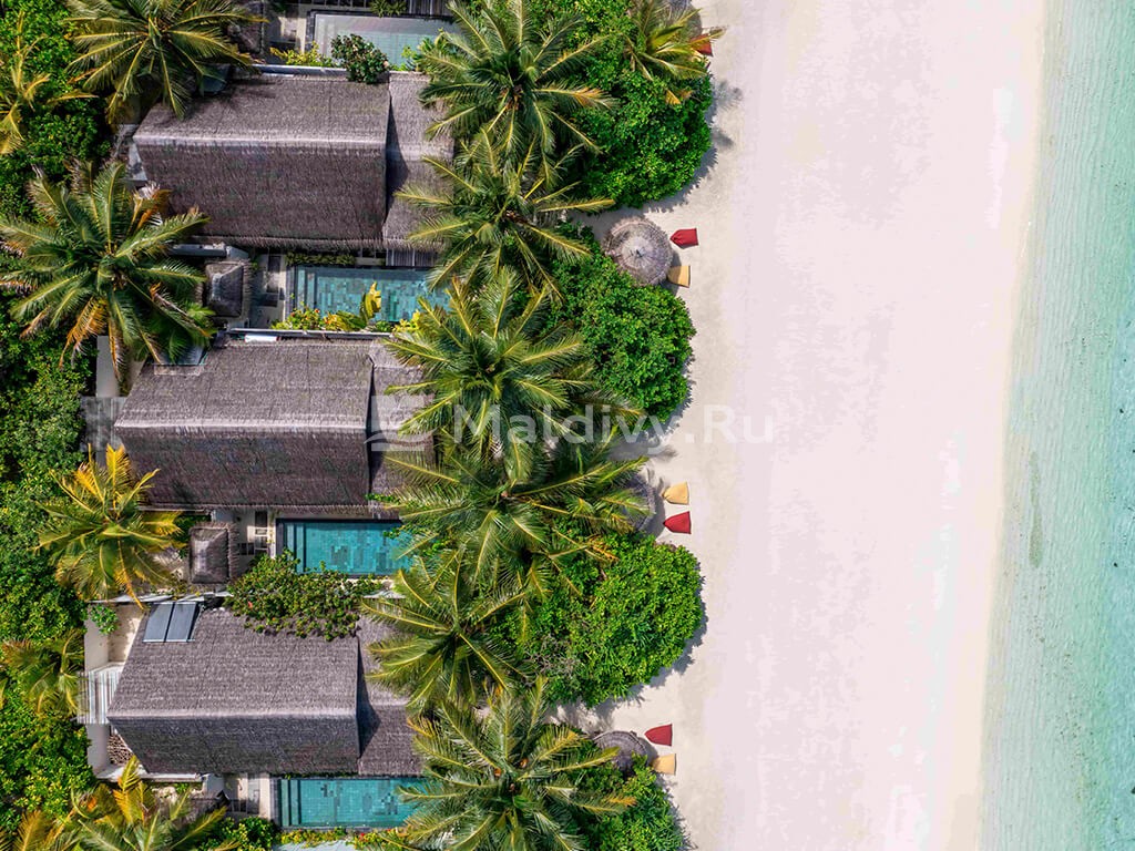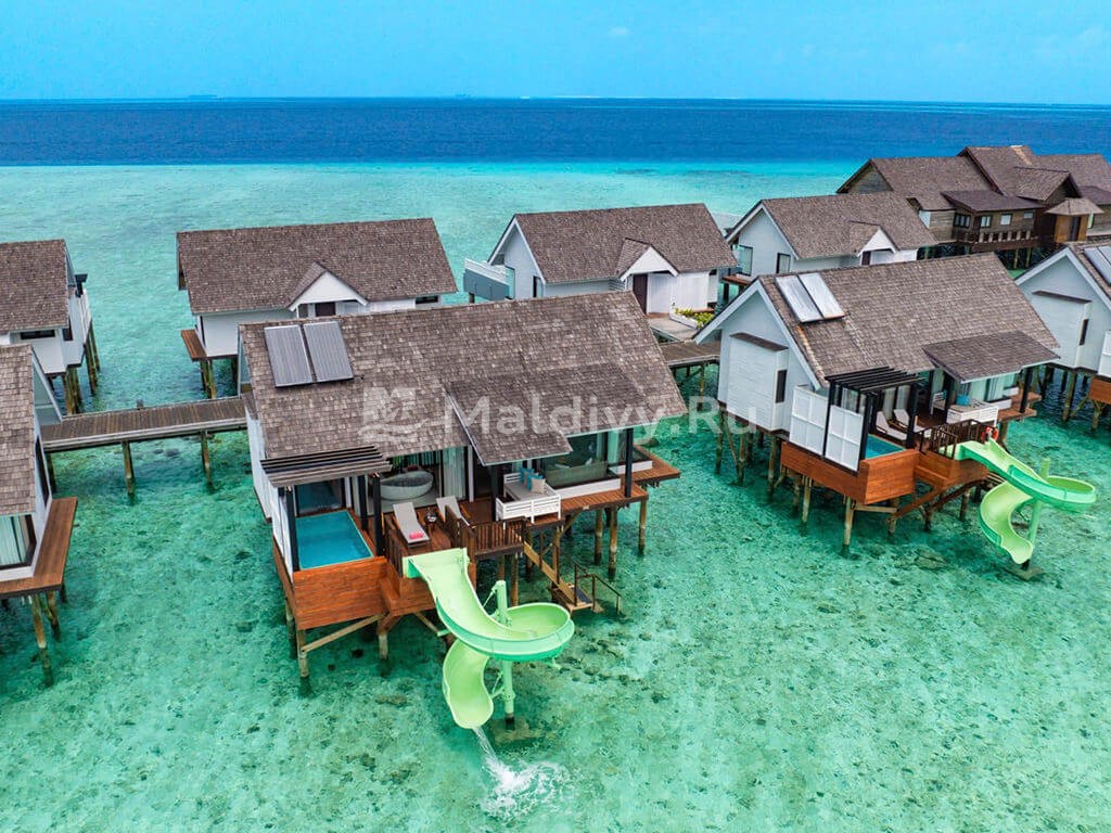 Коллекция Ozen Life Maadhoo включает 95 отдельно стоящих вилл и резиденций в 7 категориях. Одна из них появилась совсем недавно. Это Wind Villa with Jacuzzi & Slide – надводные бунгало, получившие дополнения в виде лихих водных горок и джакузи. Надводный и наземный номерной фонд разбит примерно пополам. Виллы и резиденции с бассейнами расположены по преимущественно на западной стороне, что обеспечивает потрясающий вид на закат над океаном. Все береговые виллы имеют прямой доступ к пляжу, надводные – комфортный спуск в лагуну.