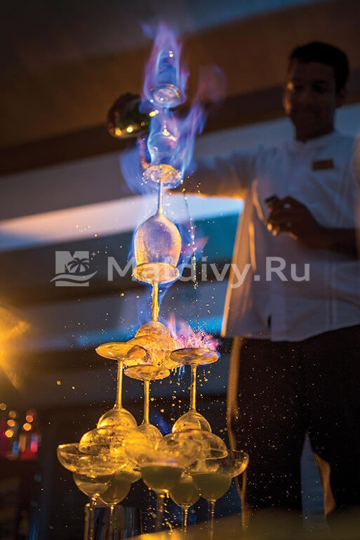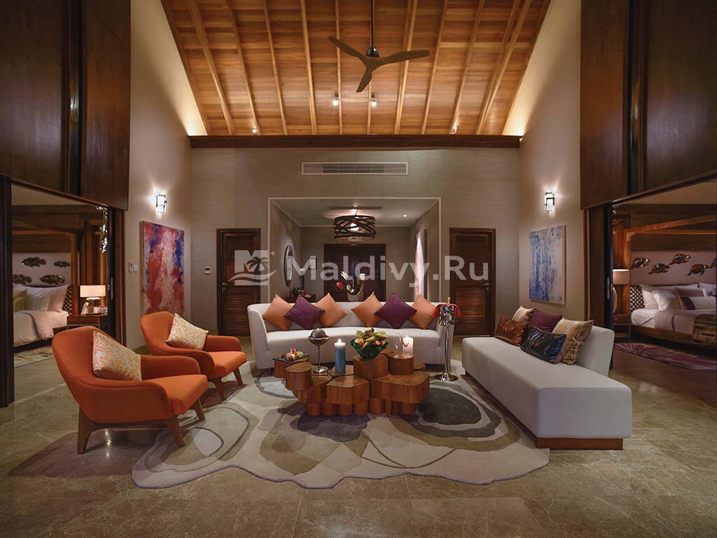 Гости отеля могут выбрать любую из 95 элегантный вилл на пляже и над водой. В их распоряжении восемь разноплановых ресторанов и баров (включая подводный M6m), разнообразный водный спорт, экскурсии и дайвинг от Dolphin Base, роскошный Elena Spa с надводными кабинетами, Ozen Kids Club для детворы от 4 лет, бассейны, спортплощадки, бутики, всевозможные ивенты. За это не нужно платить дополнительно: Life Indulgence Plan включает практически все, даже трансфер на комфортабельном спидботе. Просто приезжайте и наслаждайтесь роскошным релаксом в тропическом стиле!