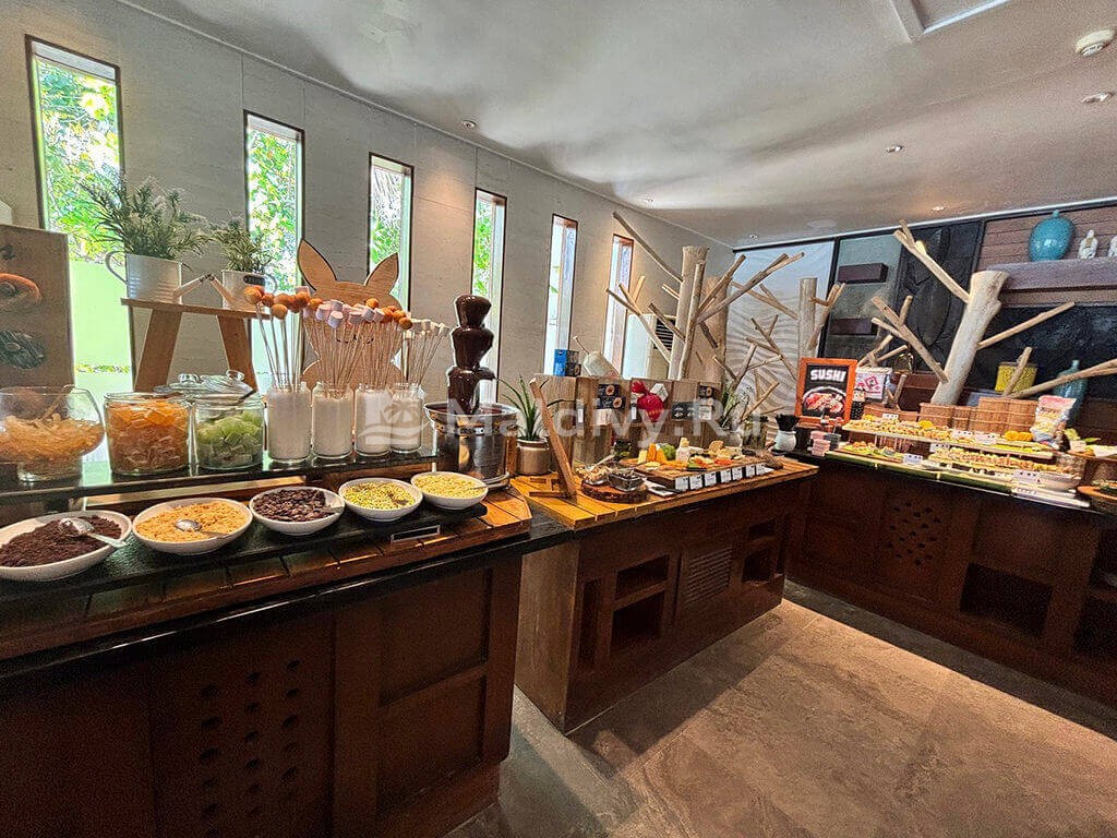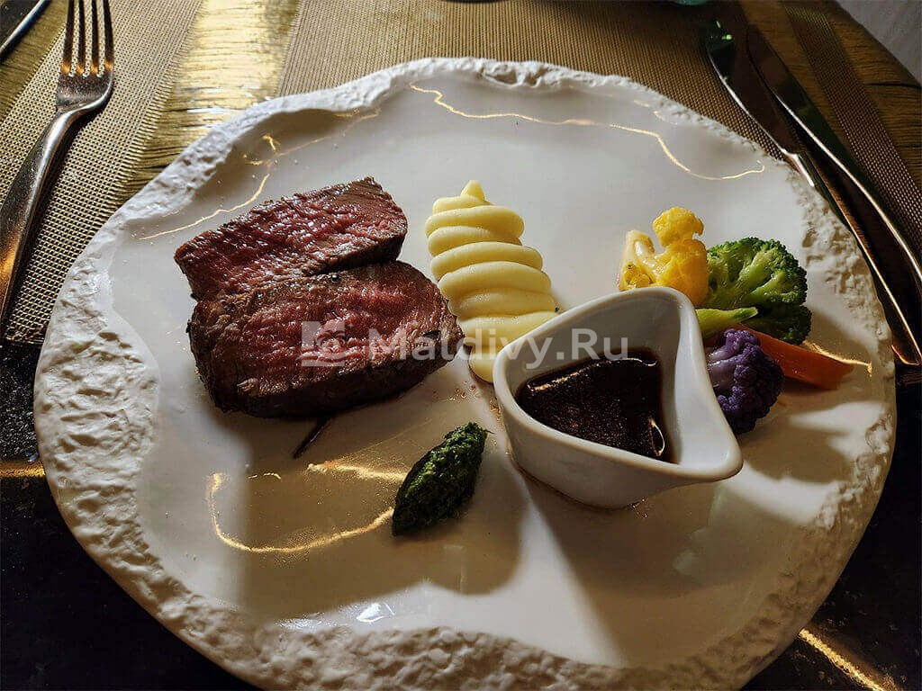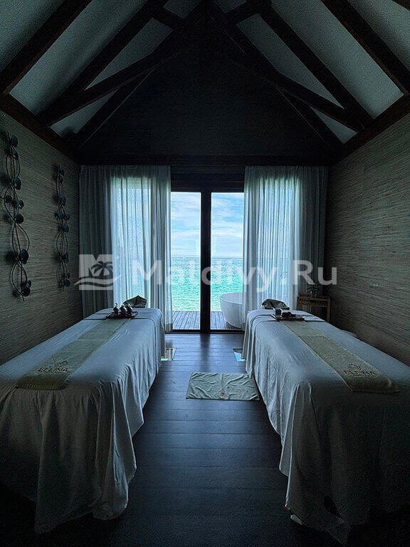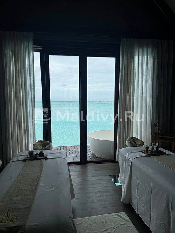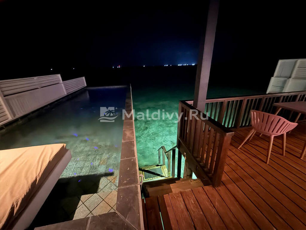 Мы с друзьями бронировали две водные виллы, нас поселили в соседних бунгало. Они не слишком большие, но чистые и уютные. С нами всегда была наша батлер Маржан, расписывала наши дни буквально по минутам: рестораны, спа, экскурсии. Почти все здесь действительно включено. Мы доплачивали только за дополнительный ужин в подводном ресторане.