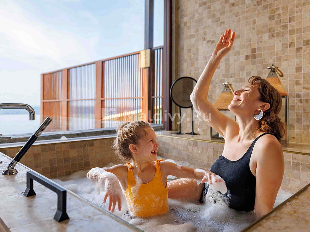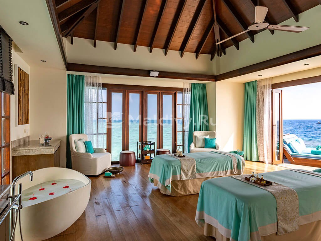 Философия Elena Spa (ELE|NA Elements of Nature) базируется на гармонии и единстве природных элементов. Это святилище красоты и здоровья занимает внушительную площадь в благоухающем тропическом саду, где расположены разнообразные велнес-пространства, лаунжи и процедурные кабинеты. Надводные сьюты реализованы по мотивам мальдивских лодок-дони, что придает им особое очарование. Изысканные процедуры от Philosophia Botanica, Voya и других прославленных брендов органично переплетаются с традиционными терапиями, обрамляя фирменную концепцию Wellness Your Way.