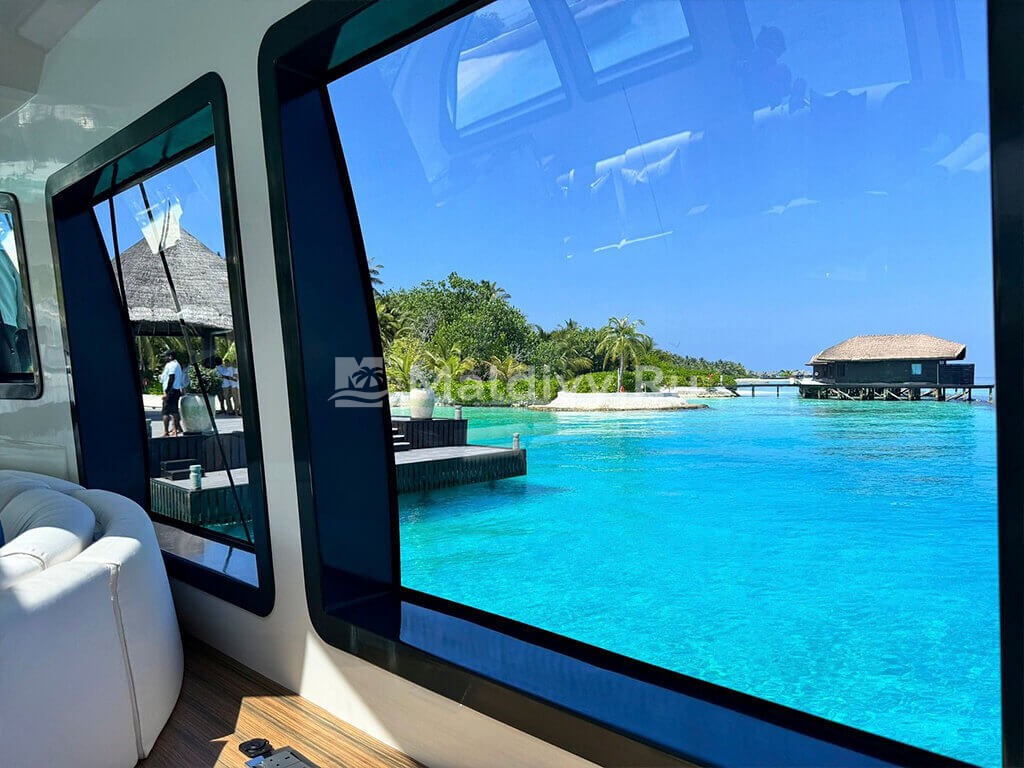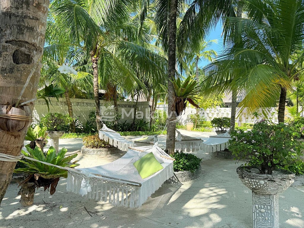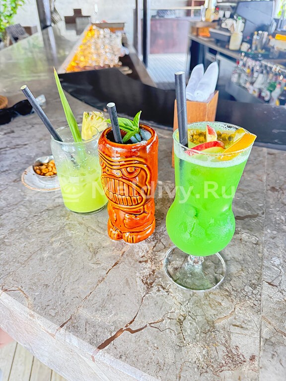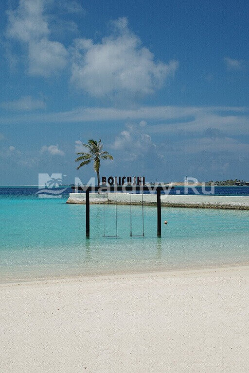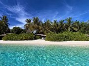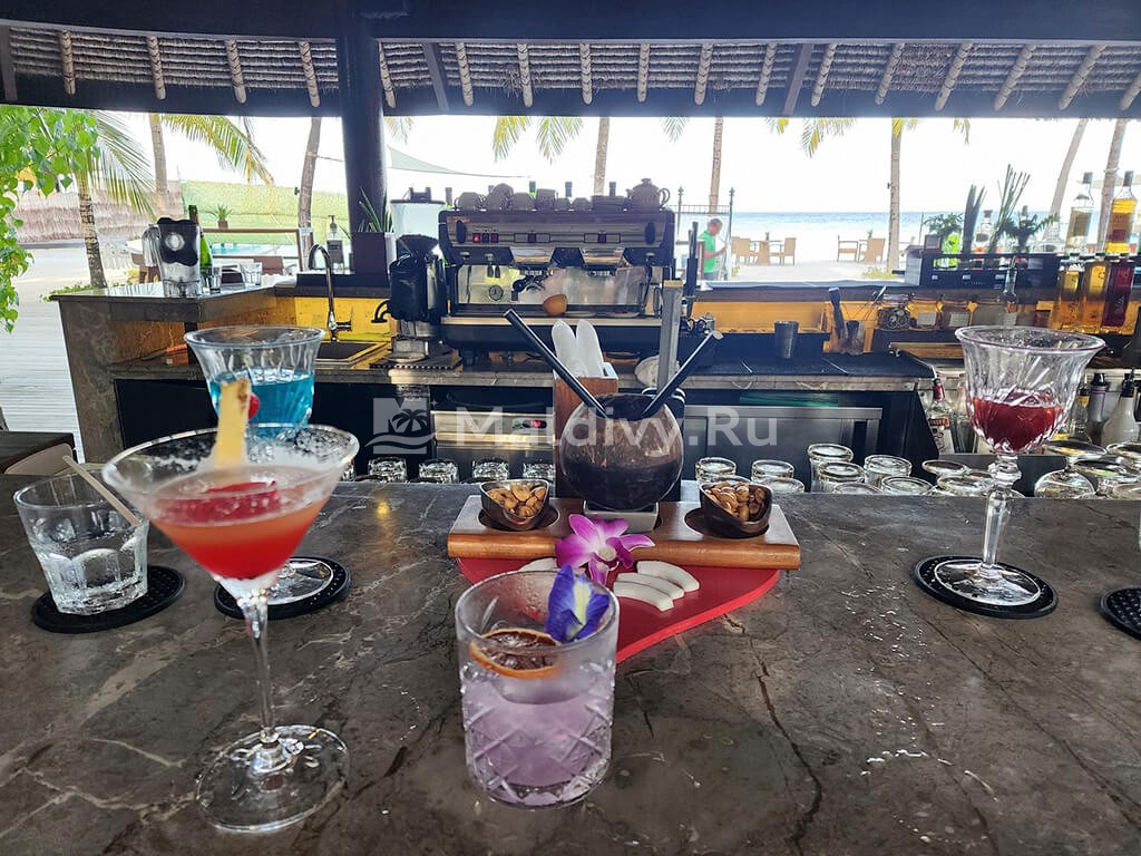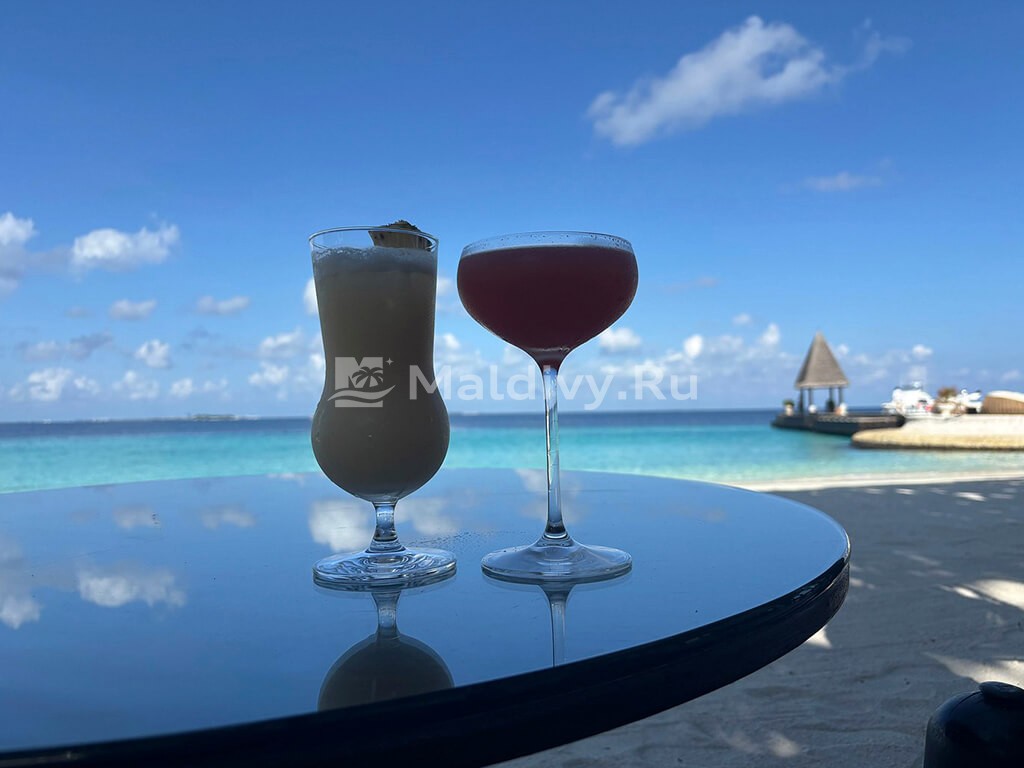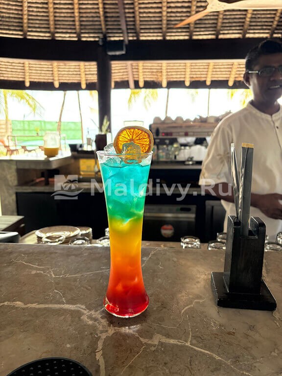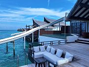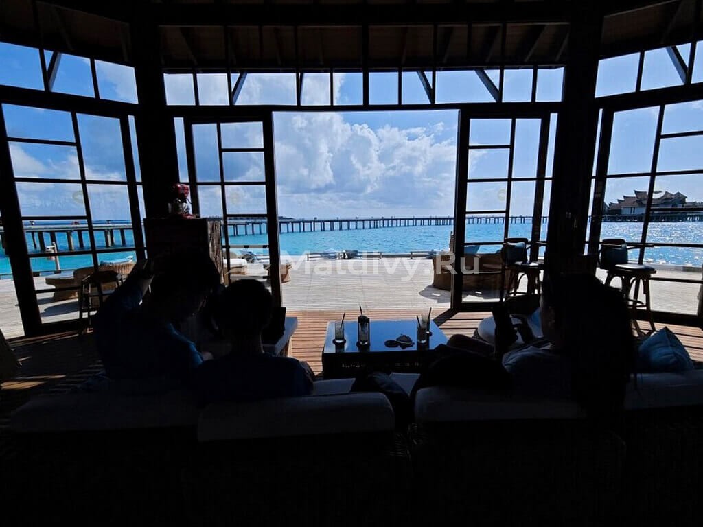 Остров достаточно большой, виллы красивые и очень просторные. Мы провели по 5 дней на пляже и над водой, в вилле с горкой. Единственный нюанс водной виллы – вдалеке видно Мусорный остров и Мале. Для кого это принципиально, оговорите при бронировании. Риф великолепный, не нужно ездить ни на какие экскурсии, все на месте – манты, черепахи, много рыбок. Скаты и акулы подходят прямо к берегу. Отличная еда и напитки, мини-бар – все входит в систему All Inclusive. Трансфер тоже бесплатный.