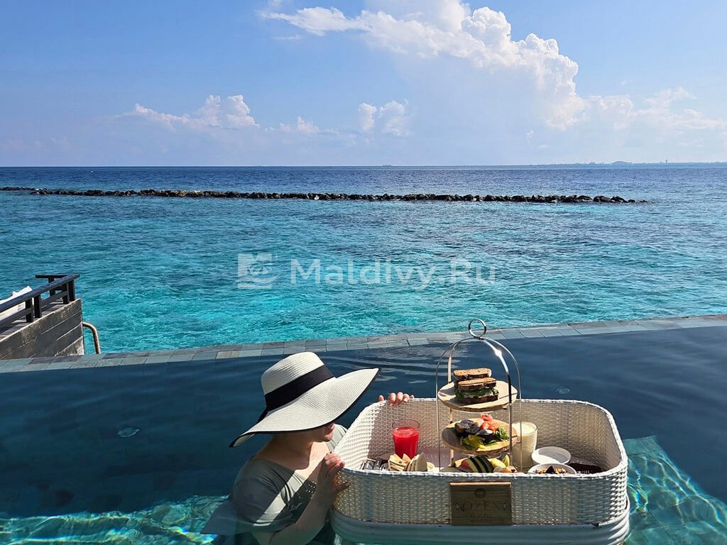 Очень понравилась вилла с личным бассейном. Ванна с лепестками роз и плавучий завтрак – отдельный вид наслаждения. Еда выше всяких похвал, каждое блюдо как произведение высокого искусства. Особенно запомнился ужин в Origin, теппаньяки и коктейли в Ozar. И каждый день что-нибудь новенькое. Если говорят, что на Мальдивах скучно, не верьте, приезжайте в Ozen Reserve Bolifushi.