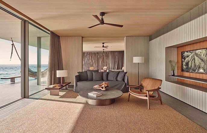 В отличие от большинства других отелей, Patina Maldives, не выстроил надводные виллы вдоль общего пирса, а разбросал их по нескольким локациям параллельно пляжу. Это позволило сократить расстояние до берега, а заодно – и обеспечить высочайший уровень приватности. Большинство надводных вилл ориентировано на сторону заката. Это не только романтично, но и удобно для любителей снорклинга: домашний риф располагается именно с западной стороны. Стильный дизайн, гармония внутреннего и внешнего пространства, неповторимый вайб абсолютной свободы и любви – то, чего ожидают от идеального надводного бунгало!