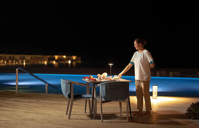 Концепция Dine Around в обрамлении Raaya Plan (All Inclusive) позволяет не только питаться в основном ресторане, но и баловать себя изысками à la carte и премиальными напитками. А ценители эксклюзива наверняка оценят разнообразное меню In-Villa Dining и Destination Dining.