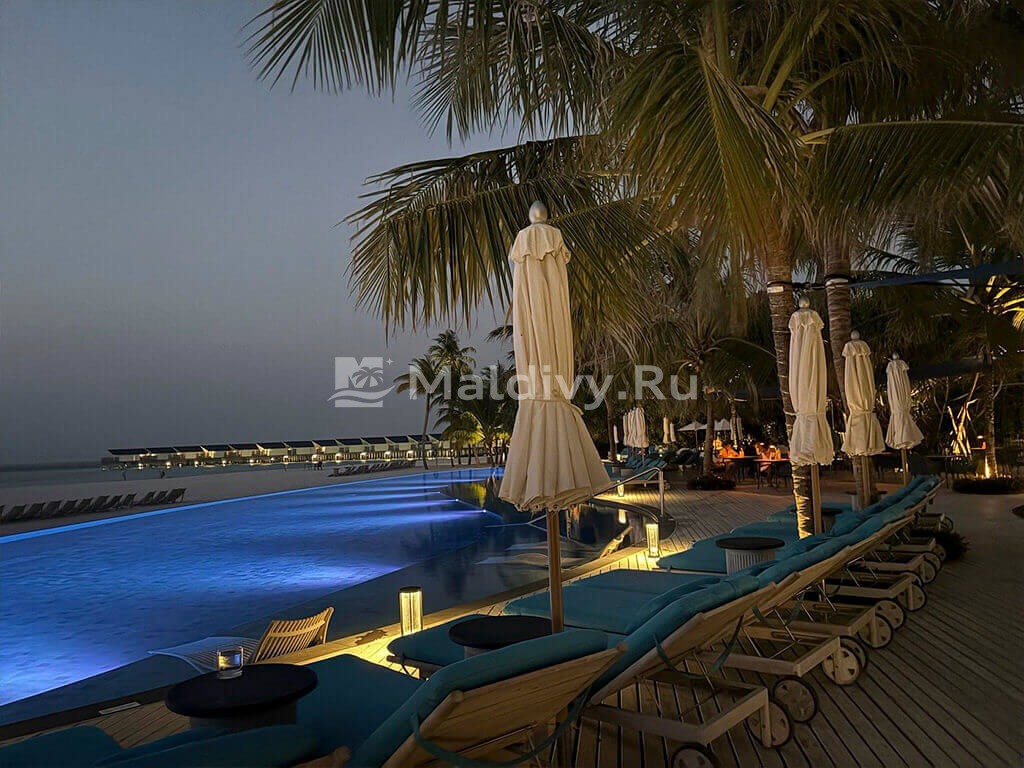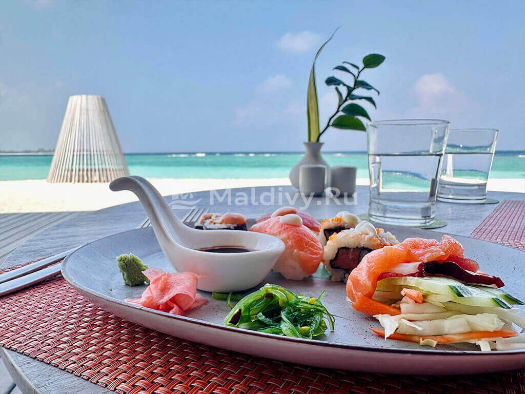 Несколько слов о системе Все включено. Тут включено действительно все, даже трансфер и потрясающий зал ожидания. Очень хороший главный ресторан Raaya Life и азиатский Ampers&nd с баром на крыше. На золотой час лучше всего идти именно туда. Немного ветрено, но вид и коктейли искупают все.