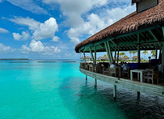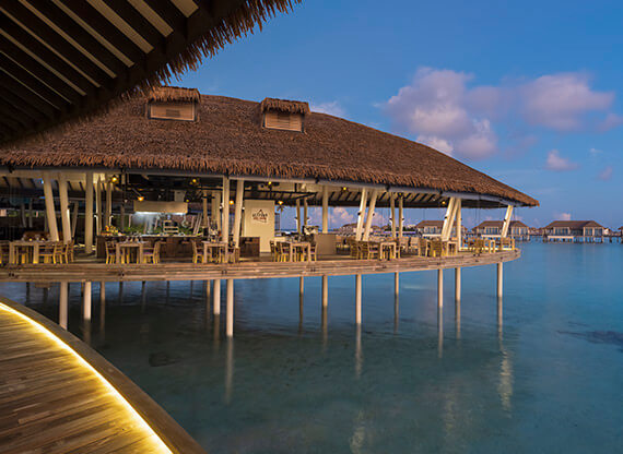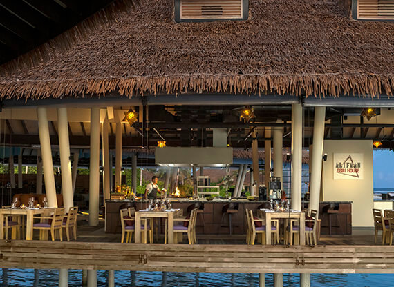 Ресторан Alifaan («Алифаан») – эксклюзивный надводный рай для любителей средиземноморских кулинарных традиций и восхитительных блюд, приготовленных на открытом огне. Говядина сухого вызревания, свежайшие лобстеры и креветки, рыба, только что плававшая в океане – все это превращается в изысканные яства на открытой кухне-сцене и тотчас же подается на стол гостям Radisson Blu Resort Maldives. Браво, маэстро!