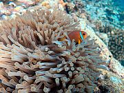 Терраса, большой бассейн и очень широкий пляж. С одной стороны, нам с мужем купаться было не очень, мелко. Зато за детей можно особо не беспокоиться, так они целыми днями играли на пляже. Снорклинг для начинающего уровня очень неплох, причем дойти-доплыть до рифа вообще не проблема. Там рыбки наполеоны, хирурги, снепперы и другие, названия которых я не знаю. Неоднократно видели скатов и рифовых акул, один раз черепаху. У нас была даже своя достопримечательность: развесистая актиния с рыбками-клоунами.