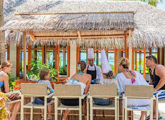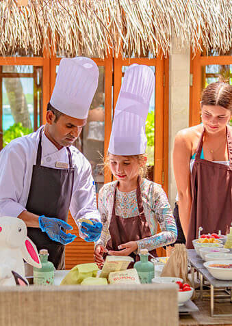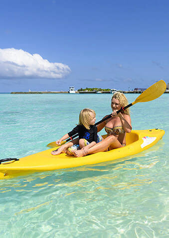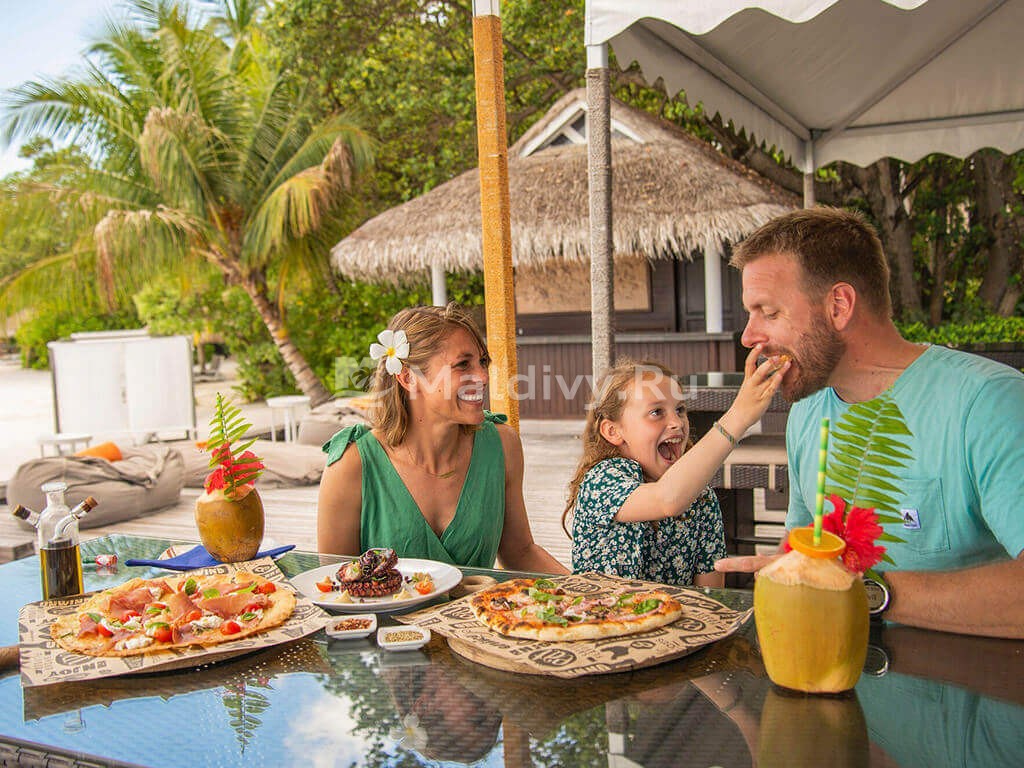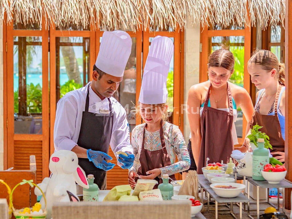 Sheraton Maldives Full Moon Resort & Spa часто выбирают семьи с детворой любого возраста – от годовалых карапузов до подростков. Отель предоставляет бесплатное проживание и питание детворе до 12 лет, доступны услуги няни, есть кроватки и аксессуары для малышей. Детский клуб Sheraton Adventure радует разнообразной и насыщенной программой (вплоть до снорклинга для детей), а специальная программа Side-by-Side позволяет классно проводить время всем членам семьи. Рядом находится Мале с отличными клиниками и прочими объектами инфраструктуры.