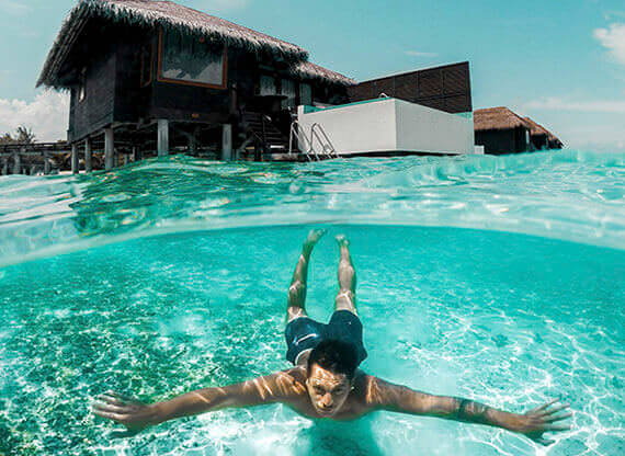 Sheraton Maldives Full Moon Resort & Spa расположился на родине мальдивского дайвинга, в Северном Мале. Резорт окружен домашним рифом, который активно восстанавливается при поддержке правительства Мальдивской Республики и компании Reefscapers. Неподалеку от резорта расположено более 40 поинтов, которые не оставят разочарованным даже искушенного дайвера.