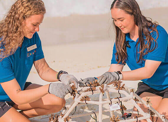 Домашний риф Sheraton Maldives Full Moon Resort & Spa находится в нескольких десятках метров от берега. Он значительно пострадал от теплового удара, но ведутся работы по его восстановлению. Уже сейчас есть несколько интересных участков, доступных с берега. Кроме того, можно отправиться на увлекательную и познавательную снорк-экскурсию с морским биологом, принять участие в программе восстановления кораллов или наведаться в гости к добродушным акулам-нянькам.