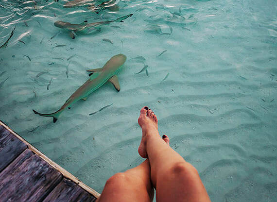 Гостям Sheraton Maldives Full Moon позируют обитатели океана: