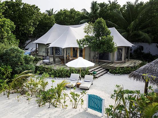 В номерном фонде Sirru Fen Fushi Private Lagoon Resort – 120 просторных вилл в трендовом стиле бохо-шик. Изюминка отеля – коллекция сафари-вилл под тентами. Начните безупречный отдых на идиллическом Секретном острове с выбора лучшей виллы с бассейном – на пляже, над лазурной лагуной или в первозданных джунглях!