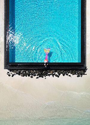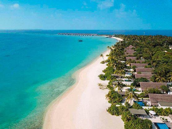 Sirru Fen Fushi Private Lagoon Resort (ex. Fairmont) – премиальный эко-отель, расположенный на большом зеленом острове, окруженном живым коралловым рифом. Номерной фонд – 120 великолепных вилл с бассейнами (в том числе, и в стиле глэмпинга). Гордость отеля – грандиозная инсталляция «Коралариум», великолепный 200-метровый бассейн, лаборатория по переработке пластика, множество фотогеничных локаций, большой выбор активити на воде и суше. С 2024 года резорт управляется Leading Hotels of the World, что привнесло новые обертона в его роскошный тропический образ.