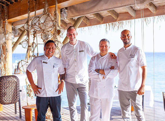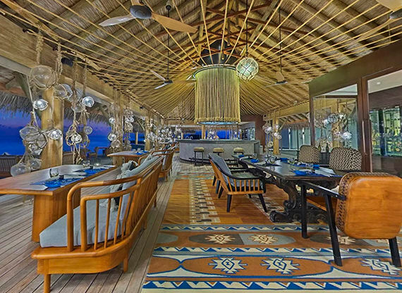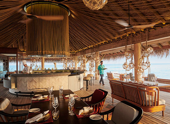 Ресторан Azure («Ажур», «Лазурь») – место, где сбываются самые изысканные гастрономические фантазии любителей даров океана. Посреди атмосферного зала установлена открытая кухня-сцена, где для гостей Sirru Fen Fushi каждый вечер разыгрываются кулинарные шоу. Выбирайте: осьминог, филе желтоперого тунца или королевские креветки, зажаренные на гриле в вашем присутствии? И не забудьте отведать блюда из свежайших лобстеров – это сказка!
