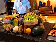 В дороге мы немного помучились, но далее все пошло замечательно (если, конечно, не считать тех самых оручих птиц). Сразу по прибытии нас ожидала бутылка шампанского «Мадам Клико» и ваза фруктов. Кстати, фрукты приносили в виллу ежедневно.
