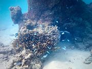 Первое, что хотелось бы отметить – великолепный риф отеля. Он не такой красочный, как, например, в Египте, но живности очень много: рыбки плавают большими стайками, дважды я видела барракуд, один раз черепаху. Акулы и небольшие скаты здесь очень частые гости. Приятно, что в водном центре можно бесплатно взять ласты и маску, причем очень неплохого качества.