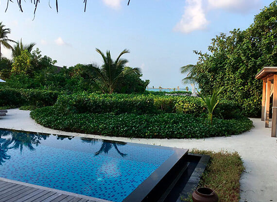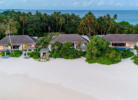 7 Bedroom Sirru Residence – это суперпросторный комплекс из трех автономных вилл, которые, в свою очередь, включают два или три отдельных бунгало со всеми удобствами. Фактически вы получаете семь номеров с отдельными выходами к пляжу, спальнями, ванными комнатами и внутренними двориками. К ним прилагаются по три террасы, полуоткрытых лаунж-зоны и бассейна.