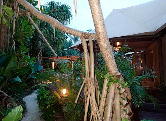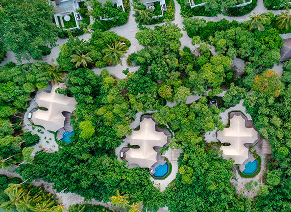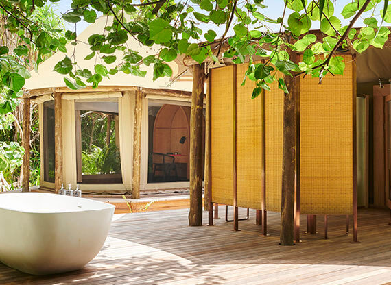 Safari Tent Villa with Pool (Сафари-вилла под тентом с бассейном) – экстравагантное размещение для любителей открытий и приключений. Вилла в стиле глэмпинга со всех сторон окружена непроходимыми джунглями, скрывающими гостей Sirru Fen Fushi Private Lagoon Resort от нескромных взглядов. Это не мешает персональному батлеру прибывать во мгновение ока по первому звонку гостей в любое время дня и ночи.