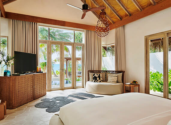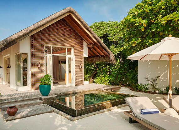 Sunset Beach Villa with Pool (Пляжная вилла с бассейном и видом закат) – воплощение вашей мечты об идеальном отдыхе в стиле баунти. Уединенное аутентичное бунгало со всеми удобствами и стильным интерьером приютилось на берегу океана, на безупречном белоснежном песке Sirru Fen Fushi Private Lagoon Resort. Первозданные джунгли, окаймляющие элегантное тропическое убежище, дарят бесценную тень.