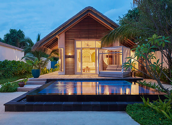 Sunset Deluxe Beach Villa with Pool (Пляжная вилла делюкс с бассейном и видом на закат) подарит вам множество незабываемых моментов, превращающих приятный отдых в Sirru Fen Fushi Private Lagoon Resort в роскошный босоногий релакс. Просторное бунгало в стиле бохо порадует вас изысканными интерьерами, бескомпромиссным комфортом и сервисом, достойным аристократов.