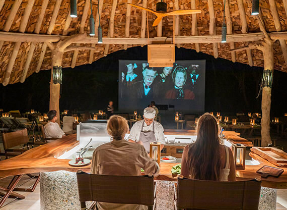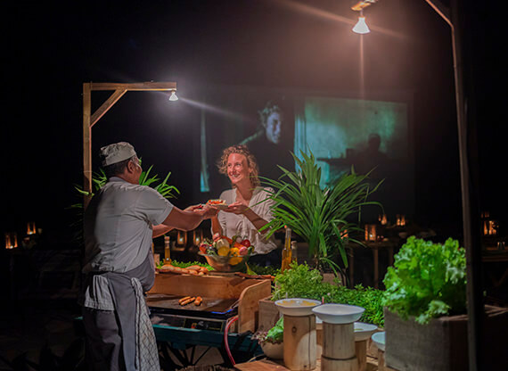 Ресторан Cinema Paradiso («Синема Парадизо») в одноименном открытом кинотеатре трижды в неделю предлагает насладиться не только просмотром бессмертной классики, но и изысканным ужином. В другое время гости Soneva Fushi могут воздать должное ассортименту великолепного бара, который радует широчайшим выбором классических и авторских коктейлей, ликеров и других напитков.